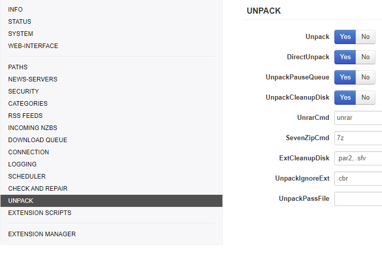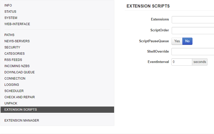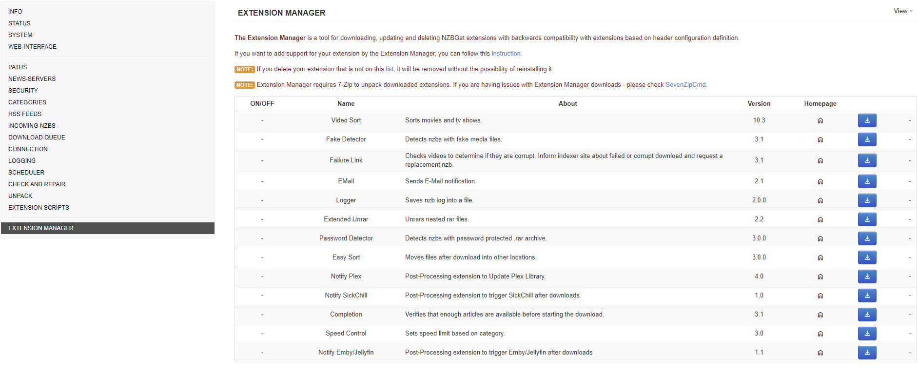 The Extension Manager is a tool for downloading, updating and deleting NZBGet extensions. It is backward-compatible with extensions based on header configuration definitions.