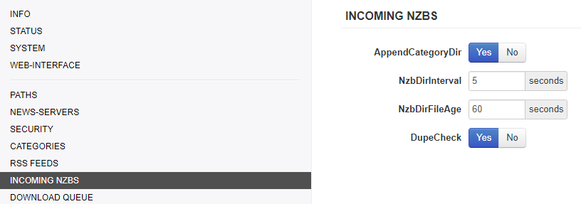 Directory for incoming nzb-files.