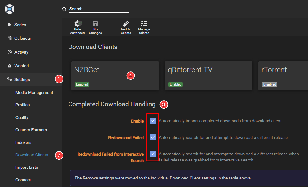 !Sonarr: Settings => Download Clients