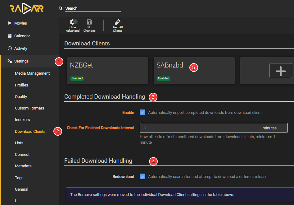 Settings => Download Clients