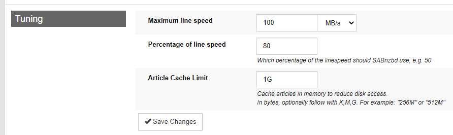 Rarely used options. Don't change these without checking the SABnzbd Wiki first, as some have serious side effects. The default values are between parentheses.