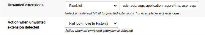 Action when unwanted extension detectedtoFail job (move to History).