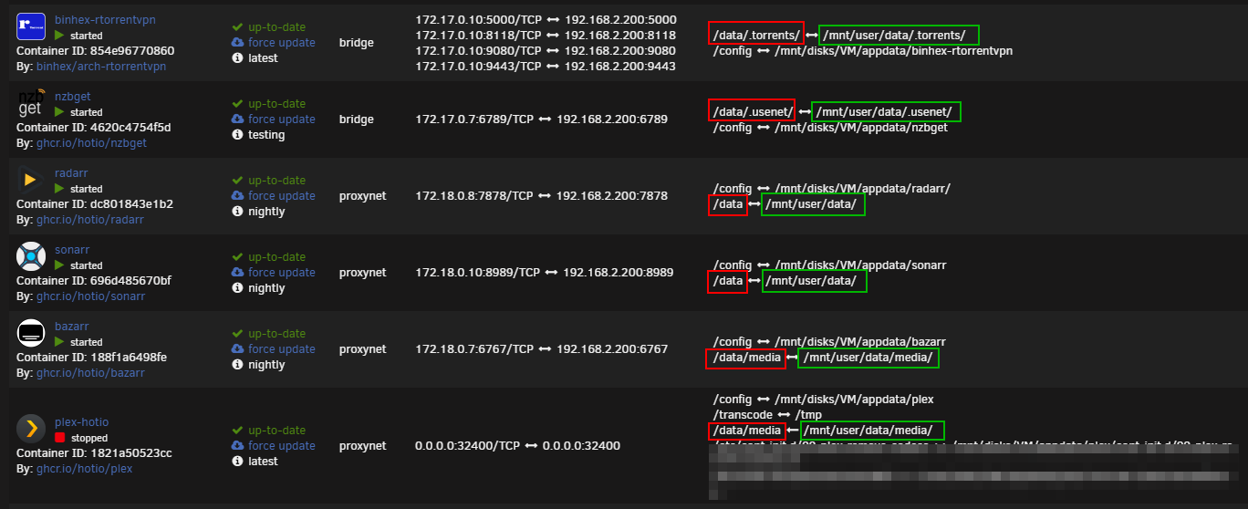 The default path setup suggested by some Docker developers that encourages people to use mounts like /movies, /tv, /books or /downloads is very suboptimal and it makes them look like two or three file systems, even if they aren’t (Because of how Docker’s volumes work). It is the easiest way to get started. While easy to use, it has a major drawback. Mainly losing the ability to hardlink or instant move, resulting in a slower and more I/O intensive copy + delete is used.