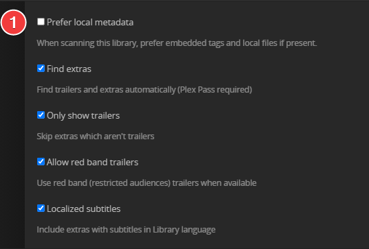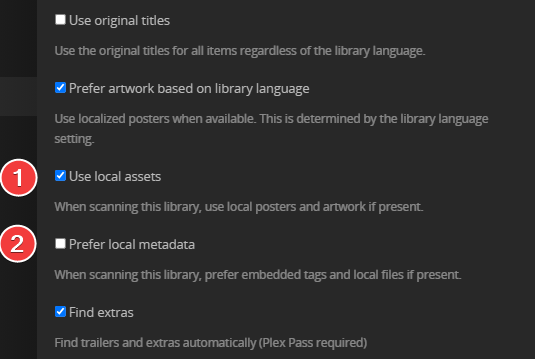 1. When scanning this library, use local posters and artwork if present. (Local subtitles files will be used whether this is enabled or not)