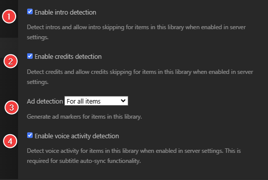 This allows the server to analyze the audio stream to detect voice activity for movies and episodes. The analysis must be run on the video before it’s possible to make use of auto-syncing for that video.