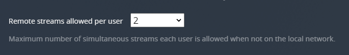 Set the maximum number of transcoding sessions that you will allow simultaneously. For instance, if you only want to allow two transcodes to happen at any one time (even if your computer is capable of more), you can set the value to 2.