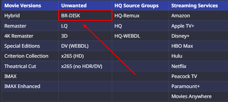 In this example, I will use the BR-DISK Custom Format, the one most people don't want to download anyway. And if you do, then you probably don't use any of the Starr apps or Plex, being both don't support it.