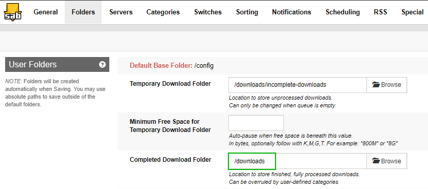 In SABnzbd go to settings => Folders